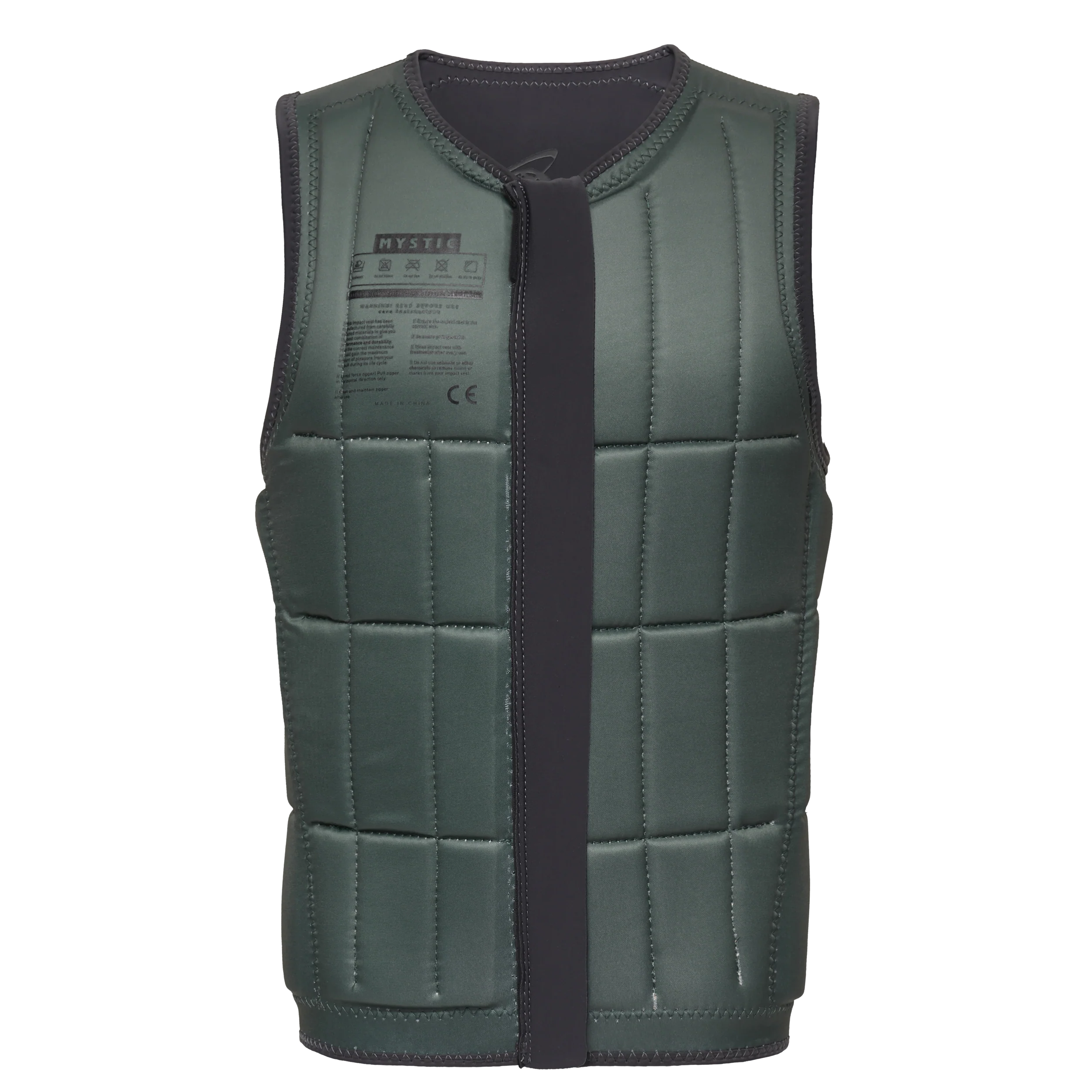 Timo keeps surprising us – taking it to the next level everytime he hits the water. It was only natural that his signature vest reflected that, featuring a big screen print on the back with unique artwork, and a new panel layout. The outside is dark grey, and the inside is green.