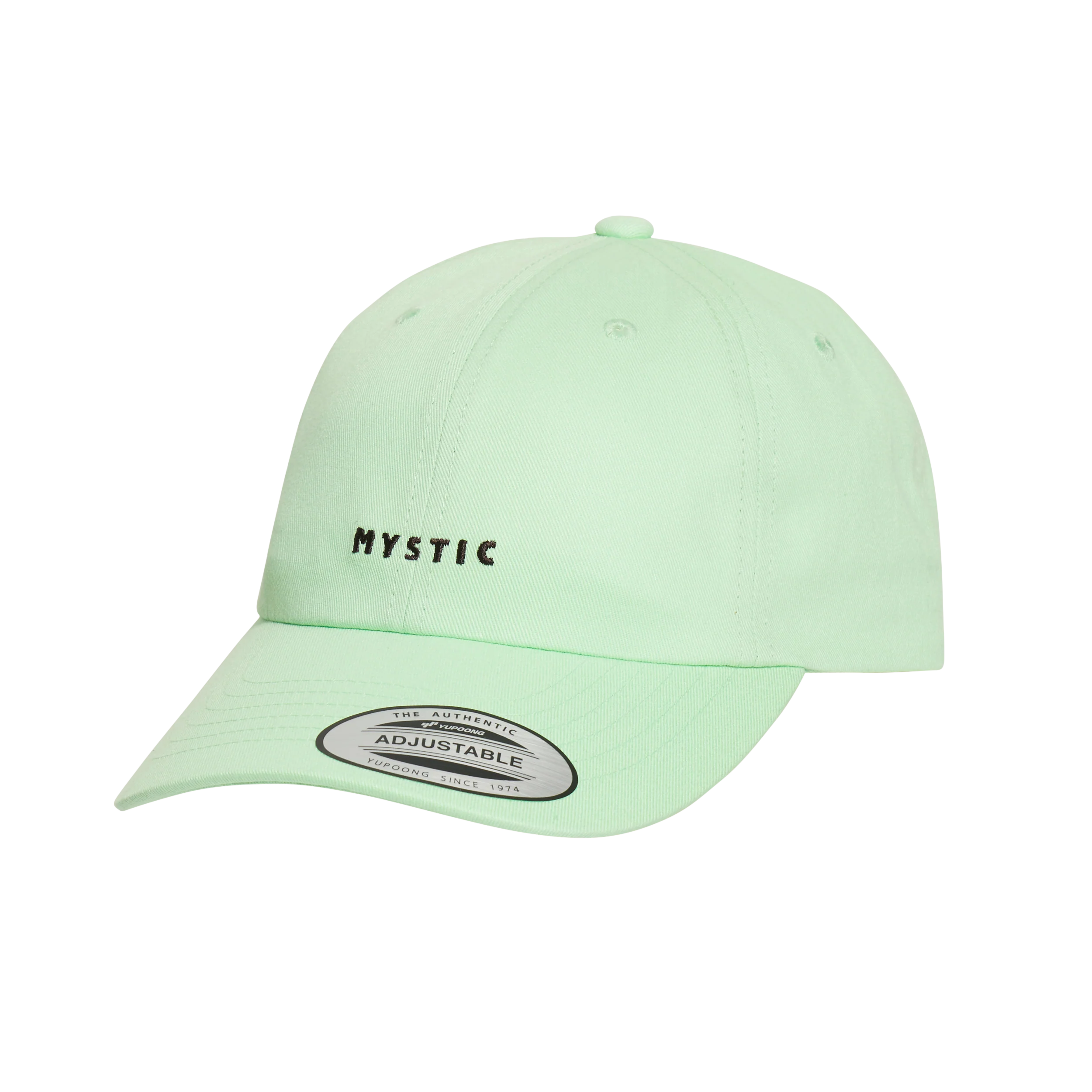 A 6-panel cotton twill cap with a curved visor and an adjustable self-fabric strap. Finished with an embroidered Mystic logo at the front.